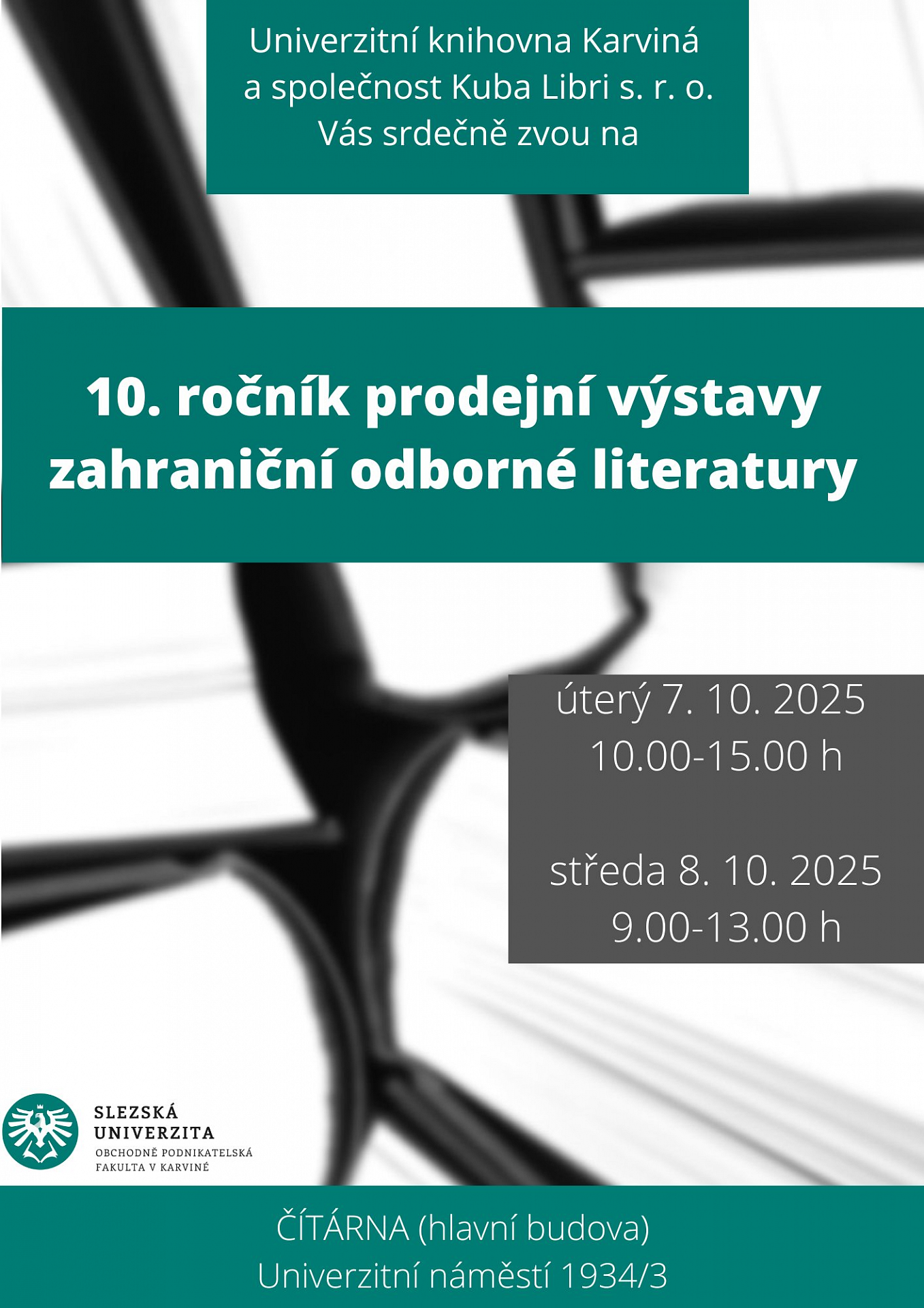 Univerzitní knihovna Karviná a společnost Kuba Libri s.r.o. vás zvou na 9. ročník prodejní výstavy zahraniční odborné literatury. Výstava se…