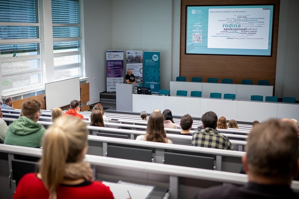 Moc vědců na Slezské univerzitě probíhala také na naší fakultě v Karviné, kde návštěvníci nahlédli na otázku „Co je to bohatství?“ z různých úhlů - od interaktivní hry o hodnotách přes význam zdraví a pohybu až po fascinující svět kryptoměn, investic a fenomén urbexu.