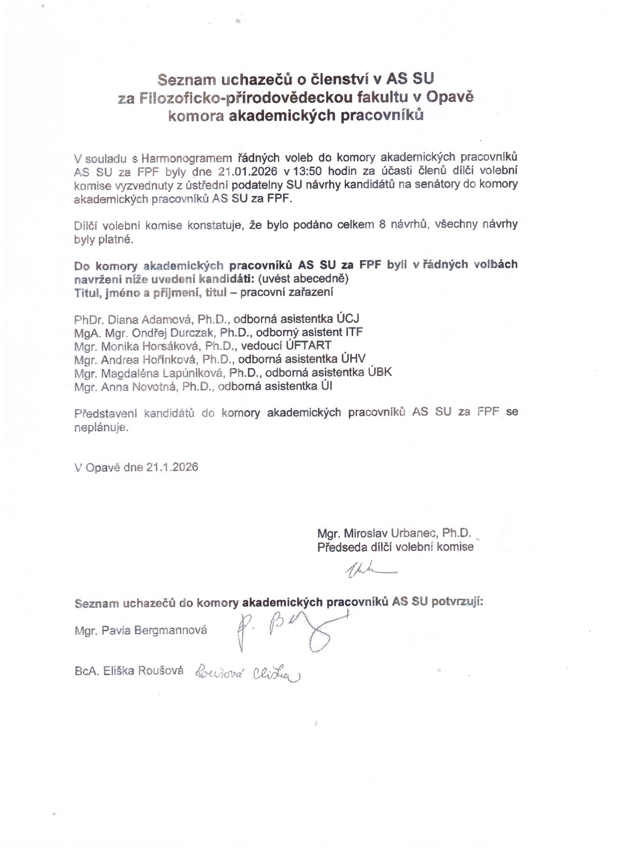 FPF - Seznam uchazečů do komory akademických pracovníků AS SU za FPF